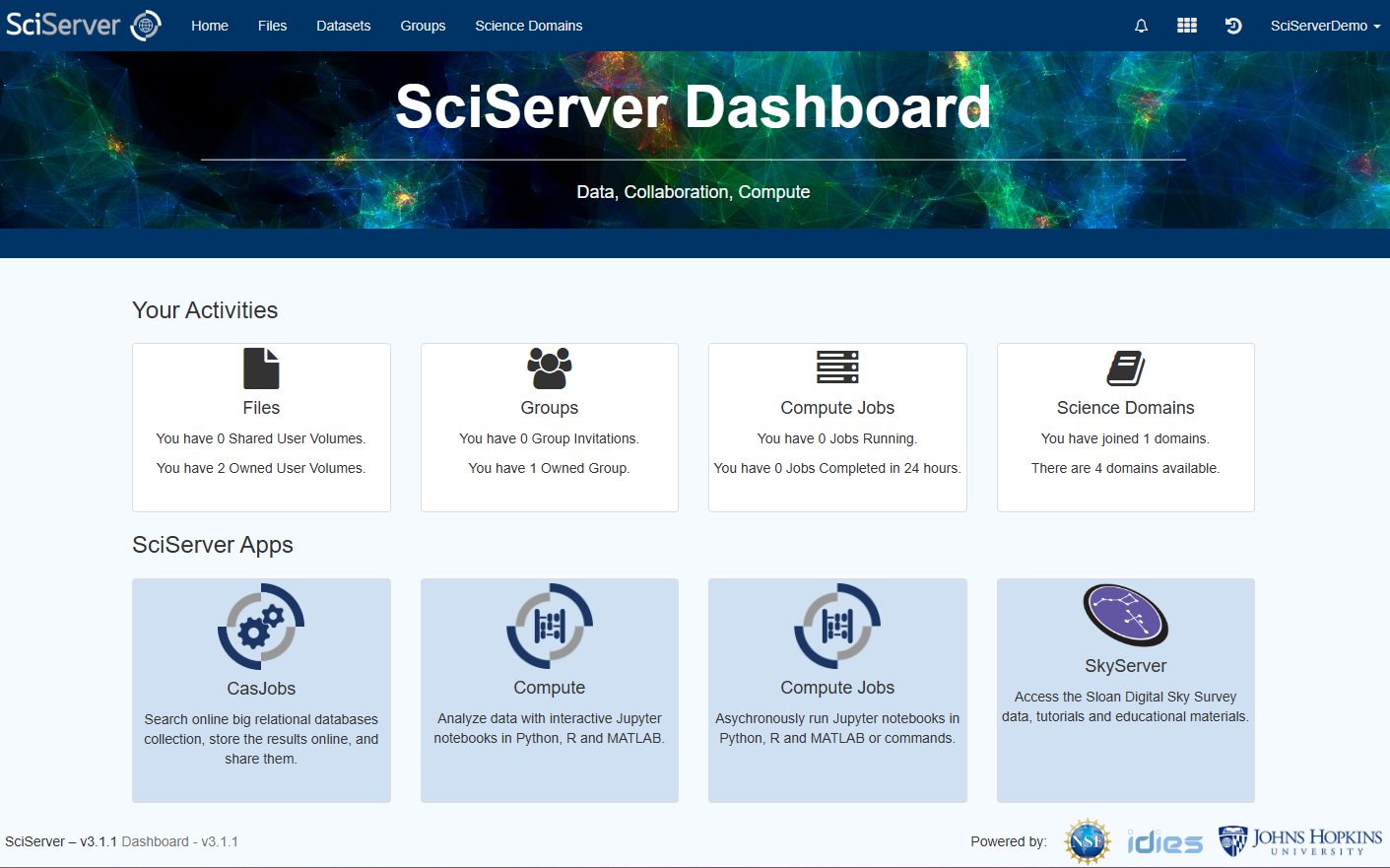 3. You will be redirected to your SciServer dashboard home page