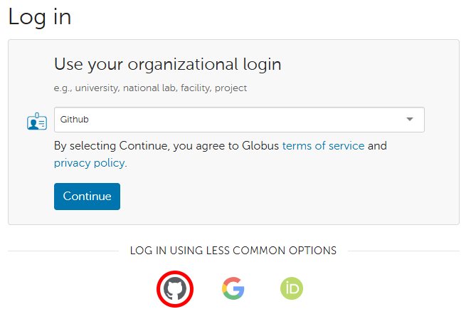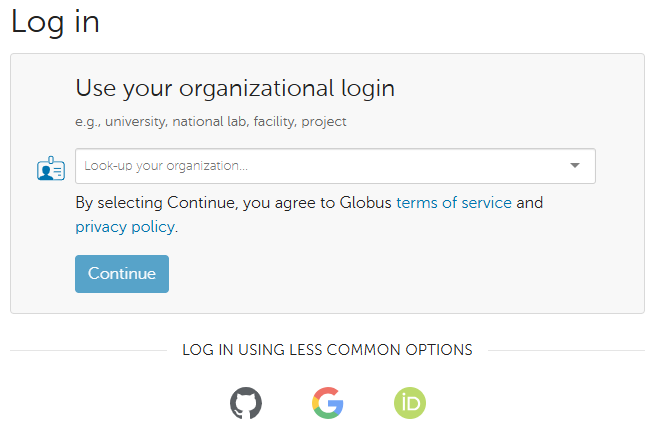 1. Click the Sign in with Globus button.