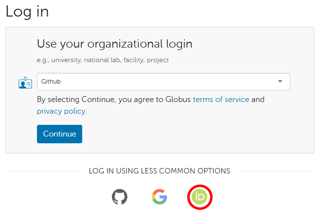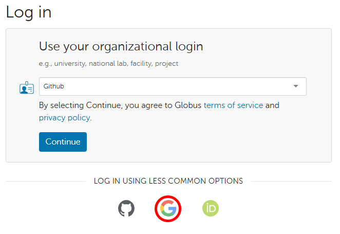 1. Click the Sign in with Globus button