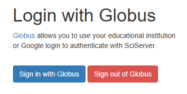 Globus login control from SciServer, containing a "Sign in with Globus" button